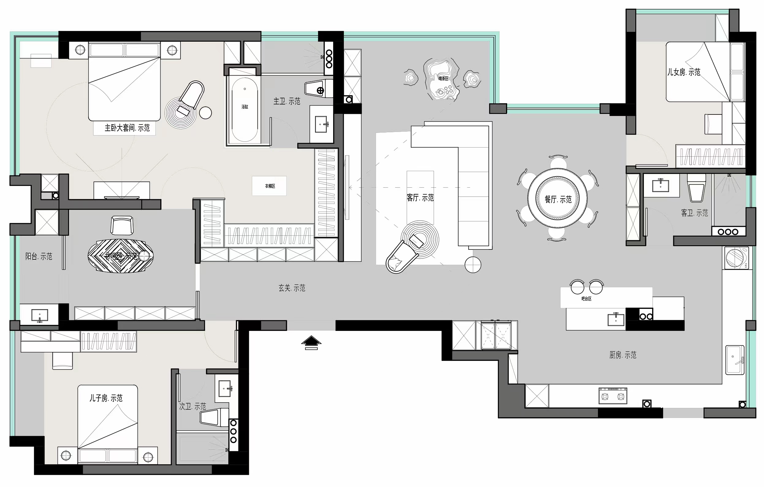 极简的线条勾勒着现代美学,低饱和度色彩组合与利落几何形态相映,在开放空间中铺陈出宁谧而包容的生活氛围。