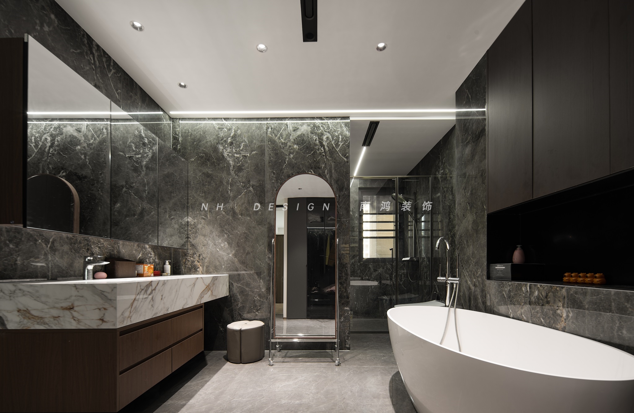 卫浴空间以精致的岩板作主视觉,搭配天然大理石瓷砖的流动纹理,塑造出五星级酒店般的奢适体验。
