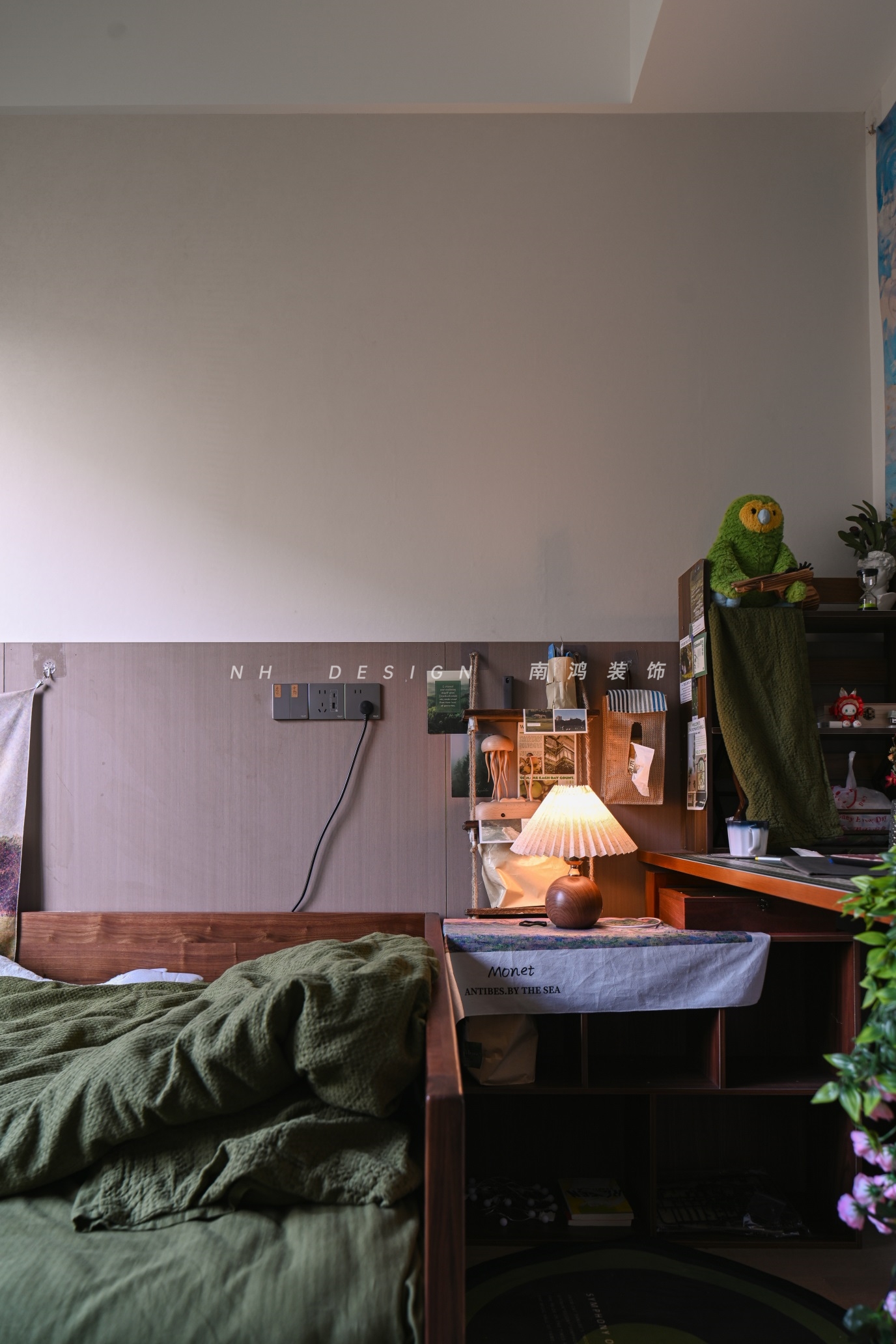 主卧设计回归到生活本真,木色由地延伸至墙,呈现着温润质感,材质、光影共同构筑起空间的静谧与隐私。